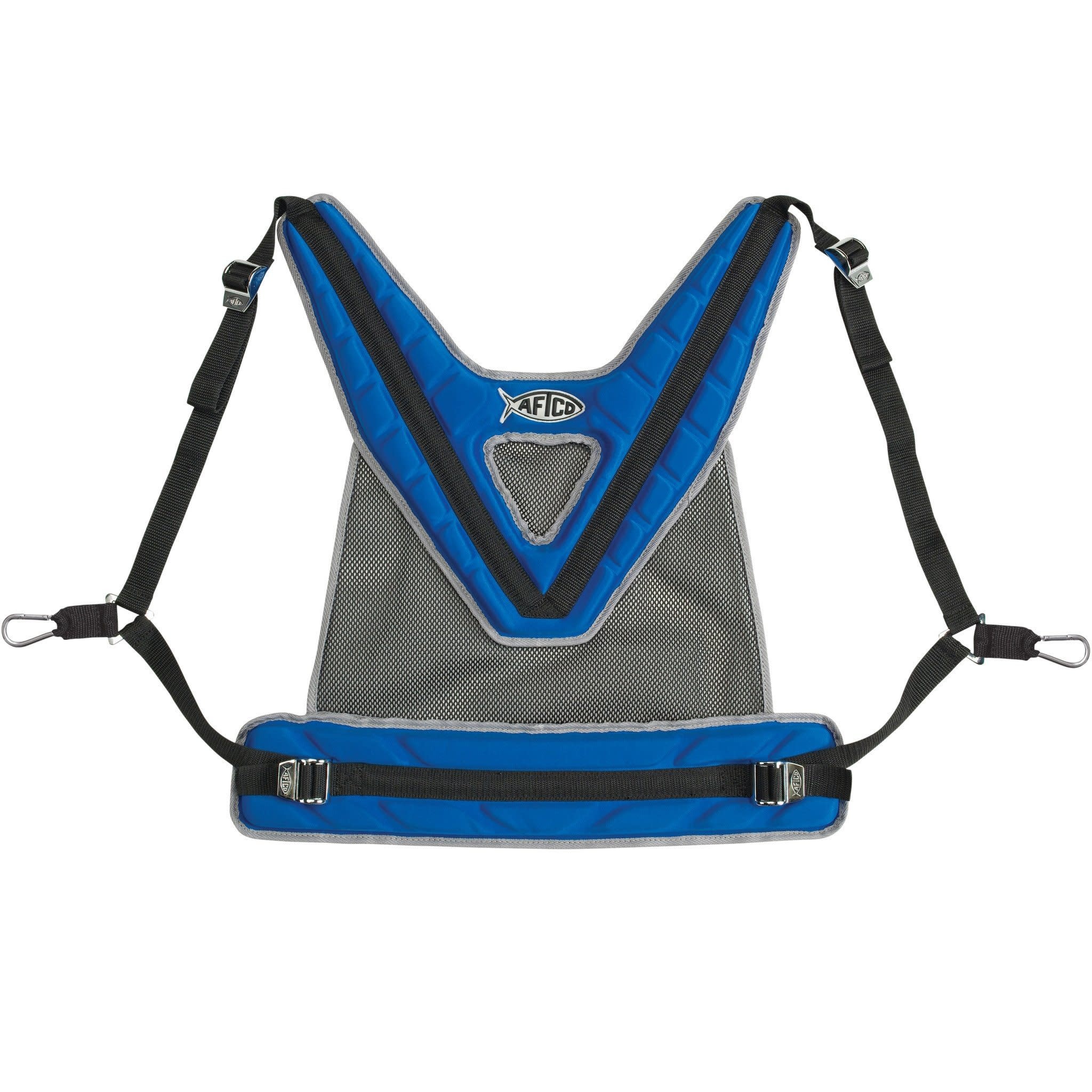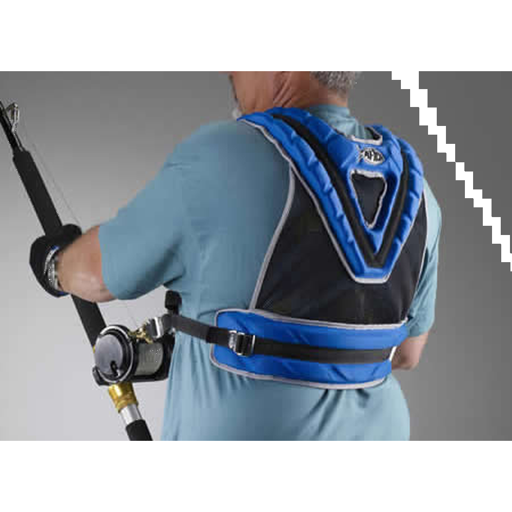 The AFTCO Maxforce II Shoulder Harness is the perfect choice for stand-up battles when using lighter tackle applications up to and including 50-lb. test line. The lycra polyester covered bio-foam shoulder and back-band padding (with synthetic terry cloth liners) connected with ventilated mesh distribute the load comfortably across the back of the angler and allow the shoulders and upper body to carry the load during extended light to medium-tackle fights with stubborn gamefish. The four stainless steel ladder-locks are easily adjustable for the perfect fit, even when under load, and the pure brass cross-lock clips provide a secure attachment to reel harness lugs. All of the nylon webbing straps are cross and box-stitched at the critical locations for extreme durability. Included is a mesh bag with grommets for rinsing the harness with fresh water and for easy storage. Otherwise, the AFTCO Shoulder Harness is completely synthetic and machine washable.